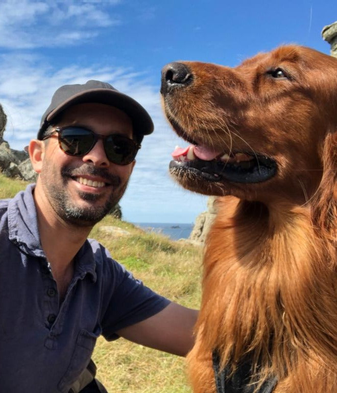 Rufus has travelled with us from the other side of the world and through multiple house moves, keeping us grounded every time. A Red Setter crossed with a Golden Retriever, he used to literally stop traffic such was his cuteness as a puppy. Now our big handsome boy is happiest lolloping across our nearby common or curled up next to us.